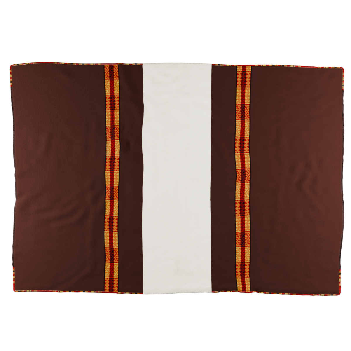 Acsu (vestido envolvente) confeccionado a partir de dos paños rectangulares, unidos por una costura central. La prenda divide su superficie en áreas de color burdeos en los extremos—decoradas con franjas de motivos geométricos en rojo y amarillo—y un área central en blanco crudo. Los bordes presentan terminaciones en festón anillado cruzado polícromo y festón simple. Prenda asociada a la niña de Cerro Esmeralda. No presenta señales de uso, lo que sugiere que fue destinado como ofrenda ritual. (Cod. MRI029)